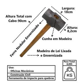 Marreta Premium Cabo de Madeira Envernizada Cunha Aço 500g, é uma ferramenta maior e mais pesada do que um martelo comum. É utilizado por quem precisa de força para quebrar ou demolir uma superfície. Sempre possui uma cabeça de ferro para causar ainda mais impacto.