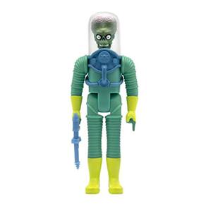 De Super7. A Mars Attacks está se juntando à linha de figuras retrô da ReAction. Baseado nos Ataques a Marte de Tim Burton, essas figuras ReAction têm 3,75 polegadas de altura e apresentam cinco pontos de articulação, além de serem embaladas em cartões de apoio retrô legais!