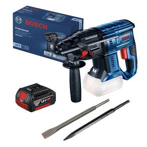 Martelete 18v bosch gbh180-li brush + 1bat 4ah talha e pont Martelete perfurador a bateria bosch gbh 180-li com sds plus, 18v + bateria 18v e 4,0ah + talhadeira e ponteiro bosch O martelete perfurador a bateria bosch gbh 180-li,18v, é ideal para os trabalhos profissionais em construções, reformas e instalações em geral. Possui sistema de troca rápida de acessórios sds-plus, e proporciona 20% mais furos do sua versão anterior. Vem com motor sem escovas de carvão livre de manutenção, Com o dobro de vida útil e maior autonomia. Além disso vem com luz de led, para trabalhar em áreas menos iluminadas. Ferramenta 100% compatível com baterias e carregadores 18v bosch. Pontos fortes da máquina: Alta performance: 20% mais furos do que sua versão anterior; Melhor custo-benefício do mercado com motor sem escovas de carvão; Velocidade variável para maior controle nas aplicações. Características técnicas: Tipo de embalagem: caixa de papelão; Acompanha maleta Não; Fonte de energia: bateria; Acompanha bateria Não; Baterias são necessárias: sim, 18v; Voltagem da bateria v : 18v; Voltagem: 110v/220v; Fonte de luz: bateria; Composição da cé da pilha ou bateria: íons de lítio ou heavy dut: bosch profissional; Dimensões do produto axlxp : 22 x 9 x 32,5; Peso do produto sem bateria kg : 2,3; Peso do produto com bateria kg : 2,6; meses : 12; Acabamento da ferramenta / composição da ferramenta: poliamida, metal e elastômero; Velocidade variável Sim; Controle de torque Não; Rolamento ou bucha Rolamento; Diferenciais técnicos: 20% mais furos; Nº de rotações rpm : 0 - 1800; Diâmetro max. Perfuração concreto mm : 20; Diâmetro max, perfuração concreto broca maciça mm : 20; Diâmetro max. Perfuração madeira mm : 30; Diâmetro max. Perfuração aço mm : 13; Sistema de encaixe: sds plus Possui impacto Sim; Força de impacto j 2; Impacto ipm = impacto por minuto : 0 - 5100; Função rompedor Sim; 'vibração m/s perfuração somente martelos ': 12,6; Técnologia do motor: pneumático; Modos de operação: 3 funções. Itens que acompanham a gbh 180-li -01 empunhadura; -01 bateria 18v e 4,0ah bosch; -01 ponteiro sds plus 250 bosch; -01 talhadeira sds plus 250 bosch. Marca: Não Informado Ean: 7909463122300