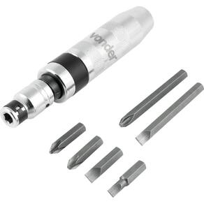 Possui sistema de reversão (direito e esquerdo), permitindo soltar parafusos rosca direita ou esquerda. Bits em aço cromo vanádio, que proporciona maior resistência e durabilidade.