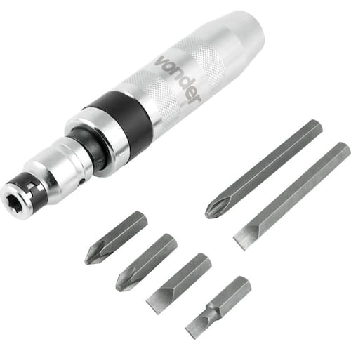 Conteúdo da embalagem: 1 Martelete de impacto manual. Acompanha: 1 bits phillips PH2, com comprimento de 36 mm; 1 bits phillips PH3, com comprimento de 36 mm; 1 bits fenda 9 mm, com comprimento de 36 mm; 1 bits fenda 11 mm, com comprimento de 36 mm; 1 bits phillips PH3, com comprimento de 80 mm e 1 bits fenda 8 mm, com comprimento de 80 mm.