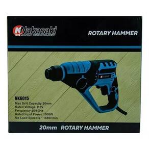 - marca: nakasaki - modelo: nk6015 - potência: 1. 000w - sistema de encaixe: sds plus - pode ser utilizado como parafusadeira - rotação: 0 a 1680 rpm - impacto: 0 a 5. 500 ipm - capacidade de perfuração: - aço 13 mm; - madeira 30 mm; - concreto 26 mm; - desempenho compacto e leve para uso confortável; - seletor de operação: permite controlar o tipo de aplicação em furar, furar com impacto - perfurações de paredes, tetos e pisos de concreto, alvenaria para instalação de pontos de fixação e passagem de tubos e fios