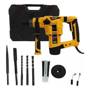 Martelete perfurador nakasaki O martelete perfurador rompedor 1400w é uma ferramenta potente e versátil, ideal para aplicações pesadas em construção e demolição. Equipado com um motor de 1400 watts, proporciona excelente desempenho para perfurações em concreto, alvenaria e outros materiais duros. Sua função rompedor facilita a quebra de superfícies robustas, como pisos e paredes, tornando-o indispensável em reformas e obras. O design ergonômico e os controles fáceis de usar garantem conforto e precisão durante operações prolongadas, enquanto sua construção robusta assegura durabilidade e resistência. Este martelete é perfeito para profissionais que buscam eficiência e confiabilidade em suas ferramentas.