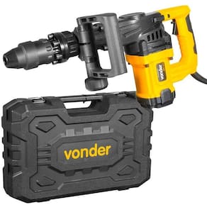 Martelete Rompedor 1300W 15 Joules MRV 1315N VONDER Conteúdo da Embalagem: 1 Martelo rompedor, acompanha: 1 maleta plástica, 1 punho auxiliar, 1 chave 2 pinos e 1 chave allen de 6 mm Indicado para remoção de pisos e rebocos em trabalhos de demolição Possui cabo com revestimento emborrachado, conferindo maior conforto no manuseio, motor com dupla isolação, que garante maior segurança ao operador, além de trava do gatilho para trabalhos contínuos DETALHES TÉCNICOS Potência (W): 1.300 Impacto por minuto do martelo rompedor (ipm):3.600/min Força de impacto do martelo rompedor:15 j Tipo de encaixe do martelo rompedor:Encaixe tipo SDS MAX Frequência:50 Hz/60 Hz Tensão (V): 127V o u 220V Segue norma:ABNT NBR IEC 60745-1 e ABNT NBR IEC 60745-2-6 Massa aproximada(Kg): 7,0 kg Nível de vibração (m/s): 17,242 m/s Incerteza k (m/s): 1,5 m/s Garantia (CDC):Garantia legal: 90 dias + Garantia contratual: 9 meses