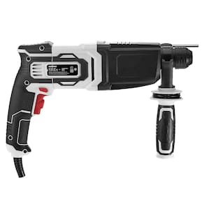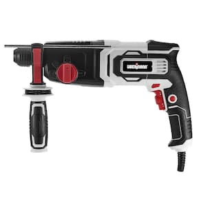 CARACTERÍSTICAS: 800 W, 3 J. Tipo de mandril: SDS +, embreagem de segurança. Funções: 4 (furadeira, furadeira, martelo, cinsel). Velocidade variável: 0-1000 rpm, 0-5300 bpm, avanço e ré, potência constante, travamento botão. Capacidade de perfuração em madeira: 30 mm, met
