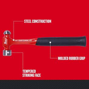 CRAFTSMAN Martelo esferográfica, 680 g (CMHT54183) - Reduz a vibração enquanto trabalha: proporciona maior redução de vibração do que os martelos de aço tradicionais de peça única - Aderência de borracha antiderrapante: alça moldada e texturizada para controle e facilidade de uso - ALTA DURABILIDADE E SEGURANÇA com face temperada, ideal para golpear cinzéis ou perfurações e rebitar, moldar e dobrar metal maleável - ALTA ESTABILIDADE E FÁCIL UTILIDADE: O design de topo plano estabiliza a ferramenta quando descansada, enquanto o lado da alça fica na vertical para facilitar a recuperação