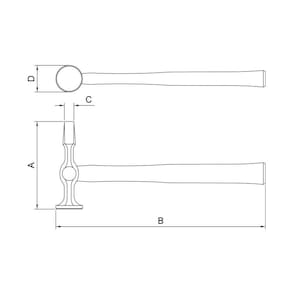Cabeça forjada em aço especial. Têmpera nas faces de impacto e pena. Base e pena polidas e envernizadas. Cabeça com acabamento jateado. Uma extremidade da cabeça com superfície plana e outra com pena reta. Fixação por cunha metálica. Cabo de madeira envernizado. ASME B107.56. Os martelos são montados em prensas hidráulicas e a fixação da cabeça do martelo no cabo é melhorada com a inserção de uma cunha metálica. A resistência da fixação é aprovada mediante os ensaios de tração. Os martelos são submetidos a um processo de têmpera localizada para ter uma dureza adequada na face de impacto e nas penas, a fim de suportar o uso contínuo por longos períodos. Ensaios de dureza são realizados periodicamente para garantir a qualidade das peças produzidas. A fim de verificar a integridade do material após o tratamento térmico aplicado nas cabeças de martelos e marretas, são realizados, ainda, os ensaios de impacto e análise de partículas magnéticas. Restauração e moldagem de chapas, principalmente para carros que colidiram. As ferramentas são produzidas e testadas conforme normas específicas.
