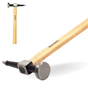 Indicação: Indicado para funilarias. Modelo: Ponta curta. Comprimento: 280mm. Largura da cabeça: 100mm. Medida nominal: 38mm. Largura da ponta: 6mm. Material: Aço forjado. Acabamento da cabeça: Pintado. Tipo do cabo: Cabo de madeira.
