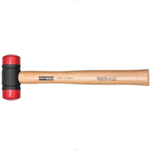 Utilizados para materiais que não podem ser danificados, como engrenagens, rolamentos, chavetas, polias, etc. Os martelos são montados em prensas hidráulicas e a fixação da cabeça do martelo no cabo é melhorada com a inserção de uma cunha metálica. Pode ser utilizado em engrenagens, rolamentos, chavetas, polias entre outros, os martelos com bordas plásticas são versáteis, pois permitem a troca das bordas, inclusive para outros materiais. Ferro fundido. Fixação por cunha metálica. Bordas intercambiáveis e substituíveis. Cabo de madeira envernizado. Dimensão A: 101mm Dimensão B: 317mm Dimensão C: 40mm Peso: 580g Modelo: 40670/041 Marca: Tramontina SKU: 8879