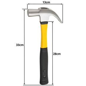 Material da cabeça: Aço forjado de alta resistência. Diâmetro da cabeça: 27mm. Material do cabo: Fibra de vidro com revestimento emborrachado. Indicado para: Carpintaria, construção civil, reparos e uso doméstico.