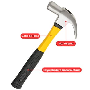 - Cabeça de aço reforçado: Alta durabilidade e resistência ao impacto. - Cabo de fibra emborrachado: Maior conforto e segurança no manuseio, com redução de vibrações. - Unha funcional: Facilita a remoção de pregos e amplia a versatilidade da ferramenta.