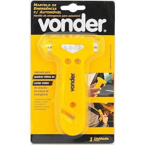 Martelo de emergencia p/automovel vonder 3589145000 Conteúdo da embalagem:1 martelo de emergência Indicado para quebrar vidros ou cortar cintos de veículos em casos de emergência Possui capa de proteção para a ponta, cabo ergonômico e lâmina com proteção para evitar cortes acidentais Material:Cabo plástico com ponta em aço carbono com acabamento cromado. Dimensões:C x l x e (134 mm x 75 mm x 25 mm) Massa aproximada(kg):145 g Garantia (cdc):Garantia legal: 90 dias