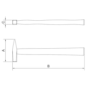 Cabeça forjada em aço especial.Têmpera na face de impacto e na pena.Base e pena polidas e envernizadas.Cabeça com pintura eletrostática.Fixação por cunha metálica.Cabo de madeira envernizado.DIN 1041.Os martelos são montados em prensas hidráulicas e a fixação da cabeça do martelo no cabo é melhorada com a inserção de uma cunha metálica. A resistência da fixação é aprovada mediante os ensaios de tração.Os martelos são submetidos a um processo de têmpera localizada para ter uma dureza adequada na face de impacto e nas penas, a fim de suportar o uso contínuo por longos períodos. Ensaios de dureza são realizados periodicamente para garantir a qualidade das peças produzidas.A fim de verificar a integridade do material após o tratamento térmico aplicado nas cabeças de martelos e marretas, são realizados, ainda, os ensaios de impacto e análise de partículas magnéticas.Golpear punções e pinos, e para rebitar, deformar ou endireitar metais não endurecidos.As ferramentas são produzidas e testadas conforme normas específicas.