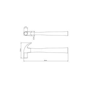 Cabeça forjada e temperada em aço especial, garantindo grande resistência ao produto. Acabamento jateado e cabeça envernizada oferecendo proteção contra oxidação. Cabo em madeira envernizada fixado com epóxi. Perfeito balanceamento entre cabeça e cabo para aumentar o conforto e a segurança do usuário. Os martelos são submetidos a um processo localizado de têmpera para se obter uma dureza adequada na base de impacto e unha que suporte o uso contínuo por longos períodos.