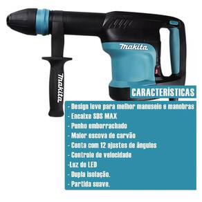 Martelo Rompedor SDS Max 1100w - MAKITA-HM0870C Descrição do Produto Martelo Rompedor Alta durabilidade e excelente performance na demolição Encaixe SDS MAX para fácil troca do ponteiro Controle eletrônico de velocidade para máxima performance Talhadeira com 12 ângulos de ajuste para maior conveniência LED de alerta que indica quando trocar a escova de carvão Informações Técnicas: - Tensão: 220 V - Potência 1.100 Watts - Impacto por min. 1.1002.650 ipm - Energia de Impacto 11,4 Joules Acompanha: - Graxa, punho lateral e maleta NÃO ACOMPANHA PONTEIRO : 12 meses 3 meses de legal por lei, contando a partir da data de emissão da de Venda e 9 meses de concedido pelo fabricante contra defeito de fabricação Todas as informações divulgadas são de responsabilidade do Fabricante/Fornecedor Imagem Meramente Ilustrativas Marca: Não Informado