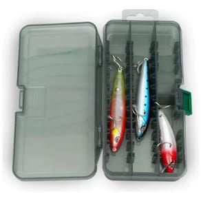 Especificações: Tampa translúcida fumê com visualização interna Fecho comt raval lateral segura Divisórias internas ajustáveis para organização personalizada Peso: 166g Dados técnicos Modelo: ds-804-gre Tamanho: larg.210mm x comp. 105mm x alt. 40mm Material: polipropileno Peso 166g As iscas não acompanham o estojo. Marca: Não Informado