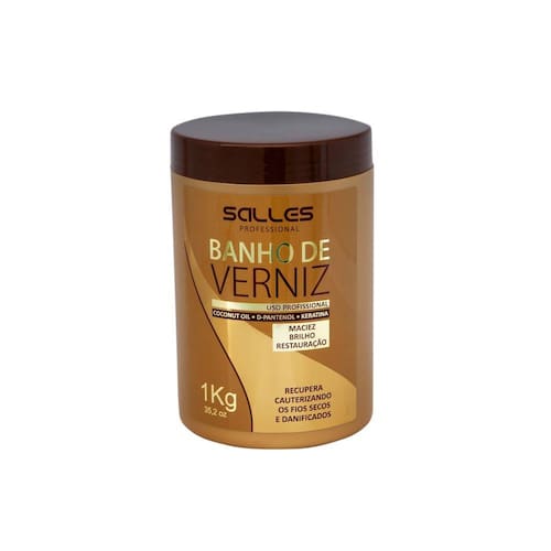 Banho de Verniz Premium - Salles Profissional, eliminando o frizz e trazendo maciez.