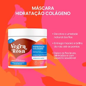 Máscara Capilar Hidratação Colágeno Negra Rosa Experimente o Máscara Hidratação Colágeno Negra Rosa • Aspecto saudável • Fios mais alinhados • Cabelos mais hidratados Descubra a linha Hidratação