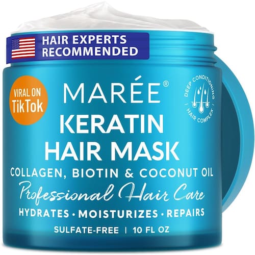 - Máscara capilar de condicionamento profundo para cabelos secos e danificados e crescimento: o tratamento capilar com queratina MAREE é infundido com ingredientes naturais para cabelos lisos e brilhantes! Nosso condicionador e máscara capilar para cabelos cacheados, com queratina, biotina e óleo de coco, hidrata e repara profundamente. Cuidado fácil do cabelo para cabelos fortes, sedosos e gerenciáveis!