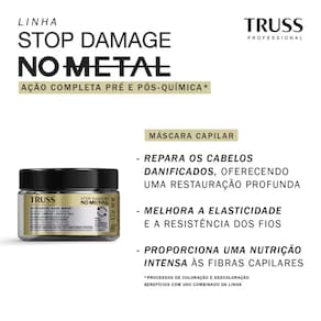 A Máscara Capilar Truss No Metal Damage 180g é o tratamento intensivo que transforma cabelos danificados e quimicamente tratados em fios fortes, brilhantes e com toque de salão. Desenvolvida para restaurar profundamente a fibra capilar, ela é a escolha ideal para quem passou por descolorações, colorações ou alisamentos e busca recuperar a vitalidade do cabelo desde a primeira aplicação. Sua fórmula exclusiva conta com um poderoso Blend de Miracle Oils, que repõe aminoácidos e lipídios essenciais, devolvendo elasticidade, resistência e brilho natural aos fios enfraquecidos. Além de nutrir, a tecnologia No Metal atua na neutralização de resíduos metálicos acumulados após procedimentos químicos, evitando a oxidação e a quebra dos fios, prolongando a saúde e a cor do cabelo.