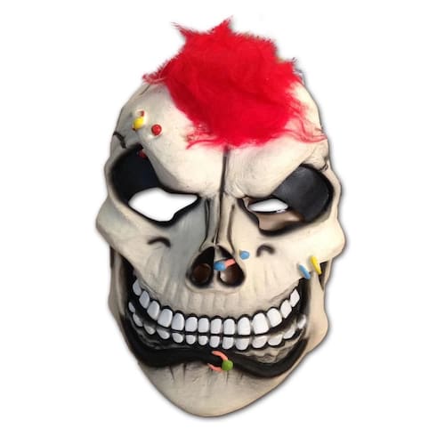 A máscara é produzida em látex. Cobre a frente do rosto, possui elástico na parte de trás, facilitando assim o uso. Tem o formato do rosto de uma caveira com cabelos no estilo punk e com diversos piercings espalhados pelo rosto.Possui orifícios nos olhos e no nariz para permitir visualização e respiração com tranquilidade.