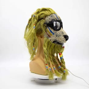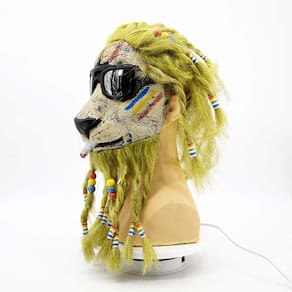 Material: Resina Tamanho: 45 x 25 cm Peso: 320 g Material: Resina Tamanho: 45 x 25 cm Peso: 320 g Feita de resina de alta qualidade, esta máscara de leão apresenta detalhes intrincados, incluindo uma juba amarela vibrante, óculos de sol e uma expressão divertida e divertida. Perfeito para cosplay, Halloween ou festas temáticas à fantasia, oferecendo uma visão ousada e bem-humorada da tradicional máscara animal. A máscara inclui miçangas coloridas e um design exclusivo com fios de crina com dreadlocks para uma aparência divertida e criativa do personagem. O tamanho único serve para a maioria dos adultos, garantindo um uso confortável em eventos e festas. Pesando apenas 320 g, é leve e durável, facilitando o uso por longos períodos sem desconforto.
