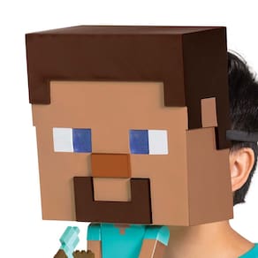 - Design inspirado no personagem do jogo Minecraft: não espere até o Halloween, esta máscara Steve Mega é uma maneira única de celebrar seu personagem favorito do Minecraft