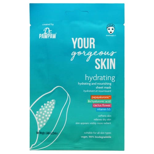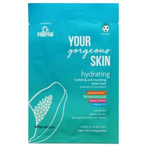 Your Gorgeous Skin Hydrating Sheet Mask do Dr. PawPaw é uma máscara facial hidratante de 0,84 onças projetada para homens e mulheres para hidratar e refrescar profundamente a pele. Infundida com ingredientes nutritivos como aloe vera, extrato de mamão e ácido hialurônico, essa máscara fornece um impulso instantâneo de hidratação, ajudando a dar volume e suavizar a pele. A máscara de lençol contorna o rosto, proporcionando hidratação intensa enquanto acalma e revitaliza a pele seca, cansada ou estressada. É ideal para dar à sua pele uma aparência revigorada e brilhante e é perfeita para preparar a pele antes de ocasiões especiais ou para uma sessão de cuidados pessoais. A máscara é isenta de produtos químicos agressivos, o que a torna adequada para todos os tipos de pele, mesmo para peles sensíveis. Seu design fácil de usar e sem bagunça permite uma experiência de cuidado com a pele sem complicações, deixando a pele macia, suave e rejuvenescida após apenas 15 a 20 minutos de uso.