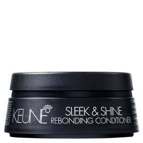 Keune Sleek and Shine RebondingKeune Sleek & Shine é uma máscara de hidratação capilar com efeito de reparação intensa. A máscara preenche os fios porosos e repara os danos com uma hidratação profunda que recupera a elasticidade dos cabelos. Ideal para cabelos secos, danificados e quimicamente tratados. A fórmula de fácil absorção fortalece e dá brilho aos fios. Enriquecido com micro proteínas do trigo, minerais essenciais, keravis e silanetriol Sleek & Shine nutre e mantém a umidade do cabelo, fortalece a estrutura do fio e proporciona resistência. Modo de Usar:Após lavar os cabelos aplique a máscara em todo comprimento, deixando agir de 3 a 5 minutos e enxágue.