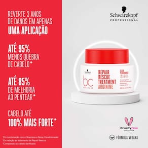 A Máscara Capilar Schwarzkopf Professional BC Bonacure Clean Performance Repair Rescue possui fórmula que traz de volta a força e a elasticidade sem sobrecarregar.