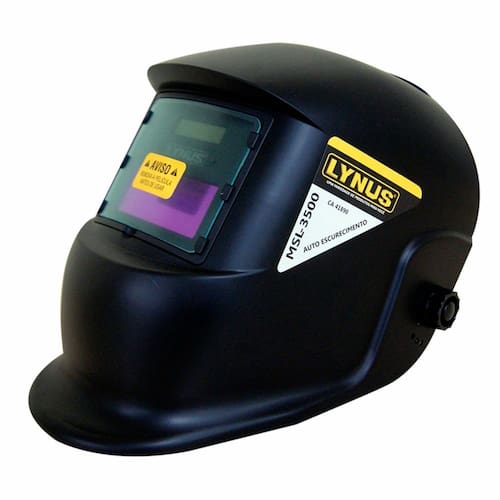 A Máscara de Solda Automática MSL-3500 Lynus combina leveza, conforto e proteção. Com design equilibrado e apoio de cabeça ajustável, reduz a fadiga durante o uso.