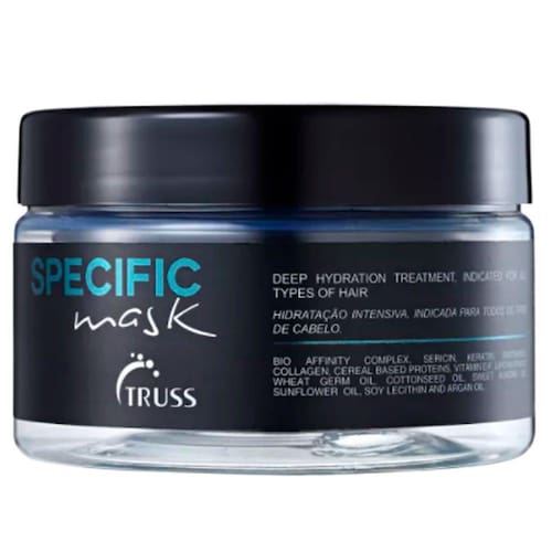 Truss Specific Mask é um tratamento elaborado com vitaminas, proteínas e óleos que reestruturam a fibra capilar com o resgate da força e a elasticidade do córtex. Ele confere disciplina e emoliência aos fios para que eles fiquem maleáveis, com brilho e macios novamente.