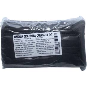 Máscara Descartável Adulto Tripla Sem Filtro Preto 50Unid