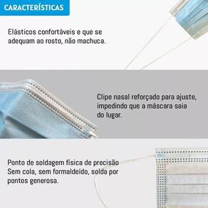 Material de Falso Tecido: Oferece conforto ao utilizar e evita irritações na pele. Estrutura Descartável: Ideal para uso único, garantindo máxima higiene. Alças Elásticas: Proporcionam ajuste seguro e confortável ao redor das orelhas. Três Camadas de Proteção: Filtragem eficiente de partículas e gotículas. Capacidade de Filtragem Atestada: 99,2% de eficácia contra gotículas e partículas virais.