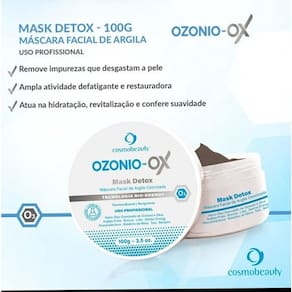 Ozonio-Ox Mask Detox promove a purificação cutânea através da remoção de impurezas que desgastam a pele. Atua na hidratação, revitalização e suavidade.Benefícios e característicasHidratanteRevitalizanteSuavizanteDetoxRevigoranteRemineralizanteAtivosNano Óleo Ozonizado de Girassol e OlivaArgila PretaArgila BrancaArgila LilásDermo-EnergyGluconolactonaBalsâmo de MirraTolúBenjoimModo de usoSobre a pele limpa e seca, aplicar uma camada Ozonio OX Mask Detox em toda região desejada e deixar agir por 10 minutos. Após, retirar completamente com água.