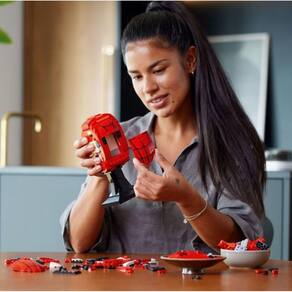 A máscara do Homem-Aranha LEGO Marvel é uma recriação autêntica do famoso lançador de teias A máscara completa do Homem-Aranha fica em um suporte que incorpora uma placa de identificação Os fabricantes de modelos podem se perder neste projeto de construção envolvente Este conjunto de construção colecionável é projetado para construtores adultos experientes Esta ideia de presente de super-herói LEGO pode ser um presente para a mãe, o pai ou até para você mesmo O aplicativo LEGO Builder tem uma versão digital das instruções de construção do conjunto A máscara do Homem-Aranha LEGO Marvel faz parte do a linha de conjuntos LEGO para adultos O modelo de construção e exibição de 487 peças tem mais de 19 cm de altura