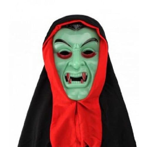Máscara Dracula com capuz Festaria Máscara de Drácula para deixar a sua festa e a sua fantasia ainda mais completa. Características do produto: Material: Plástico e tecido Cor: verde e preto Dimesões: 16 cm x 24 cm 90 dias de contra defeitos de fabricação Marca: Não Informado