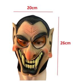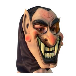 A Máscara Vampiro Mau com Capuz cobre a cabeça inteira pois tem um capuz na parte de trás, tem uma boca gigante e dentes enormes.
