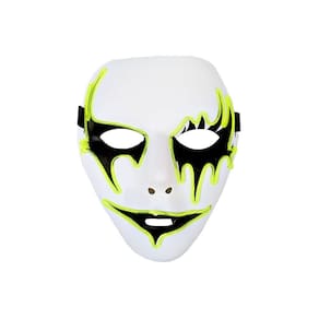 As marcas e delineados marcantes da máscara adicionam uma dimensão artística ao seu visual, destacando-se em meio à multidão. Mas o verdadeiro toque de magia é o LED embutido, que transforma esta máscara em algo inesquecível. As luzes dançam em torno dos detalhes elegantes da máscara, tornando-a uma peça central em qualquer festa ou evento de Halloween.
