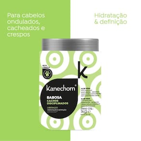 A Máscara Condicionante Hidratante Cachos Disciplinados Kanechom possui em sua fórmula Wave Max* e Extrato de Babosa que deixam os cachos bem definidos e hidratados, proporcionando leveza e movimento natural aos fios.