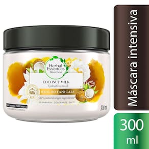 MÁSCARA INTENSIVA HERBAL ESSENCES BIO RENEW HIDRATAÇÃO COM LEITE DE COCO Máscara hidratante para um cabelo suave e sedoso. A máscara intensiva Herbal Essences Leite de Coco está especialmente inspirad