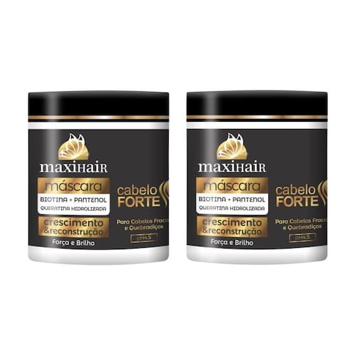 Máscara maxihair 500g biotina forte - kit com 2un Descrição A máscara maxihair de 500g biotina forte é especialmente desenvolvida para fortalecer e revitalizar os cabelos, promovendo crescimento saudável e resistência. Enriquecida com biotina, uma vitamina essencial para a saúde capilar, sua fórmula atua profundamente nos fios, fortalecendo a estrutura capilar e prevenindo a quebra. Ideal para cabelos fracos e com queda, esta máscara proporciona brilho, maciez e vitalidade, deixando os cabelos visivelmente mais fortes e saudáveis. Modo de uso Com os cabelos limpos e úmidos, aplique a máscara maxihair biotina forte em toda a extensão dos fios, evitando a raiz. Massageie suavemente para garantir a do produto. Deixe agir por 10 a 20 minutos para uma hidratação e fortalecimento intensivos. Em seguida, enxágue bem com água morna até remover todo o produto. Utilize a máscara uma ou duas vezes por semana para manter os cabelos fortes e nutridos. Marca: Não Informado Ean: 7908885346943