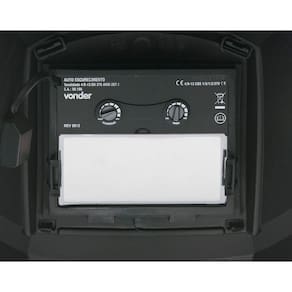 Oferece mais tecnologia, praticidade e segurança nos trabalhos com solda, sendo uma referência em inovação. Dispensa a troca de lentes durante o processo de solda e ajusta-se à capacidade visual de cada operador através do botão de ajuste de tonalidade, que varia de 9 a 13. Conta com ajuste da velocidade de escurecimento da lente, fazendo com que permaneça escura por mais tempo ou fique clara rapidamente ao término da solda. Permite o ajuste de sensibilidade, responsável pela velocidade que o sensor leva para ativar a proteção da máscara, o que acontece instantaneamente, cerca de 1/10.000 segundos assim que o raio da solda chega ao sensor, protegendo por completo a visão do operador. Alimentação por bateria de lítio/células solares. Tonalidade no estado claro: 4. Área de visão: 96 mm x 42 mm. Dimensões do filtro: 110 mm x 90 mm x 8 mm.
