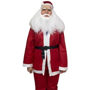 Esse conjunto inclui a calça e o casaco vermelho do papai noel, o clássico gorro e o cinto para ajustar sua roupa. Além disso tudo, uma máscara SUPER REALISTA de Papai Noel - O grande destaque! A máscara é extremamente realista, feita com materiais de alta qualidade, que garantem que você fique irreconhecível. A pele, os detalhes da barba e os olhos são tão naturais que ninguém vai imaginar que é você por trás do disfarce. Isso mesmo: seus filhos, parentes e amigos vão acreditar que o Papai Noel REAL chegou para distribuir os presentes de natais!