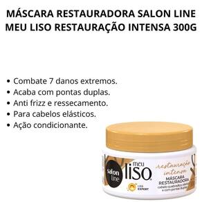 A Máscara Restauradora Meu Liso Restauração Intensa contém fórmula poderosa para combater 7 danos extremos dos cabelos lisos ou alisados: cabelos fragilizados, fios com pontas duplas, ressecamento, frizz, elasticidade, quebra e opacidade!Ação condicionante.