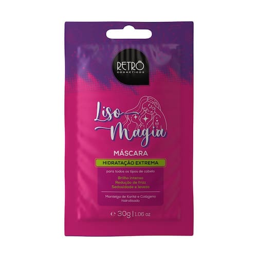 A Máscara Liso Magia possui em sua formula especial: D-Pantenol, Queratina e Colágeno Hidrolisados, para uma hidratação extrema, redução de volume, eliminação do frizz e um brilho surpreendente, agindo do comprimento ás pontas.