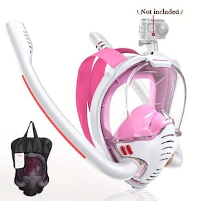 O tubo de snorkel é dobrável e vem com 1 O Ring, e uma bolsa de malha, câmera de design na máscara snorkel, para que você possa capturar cada momento maravilhoso no mar