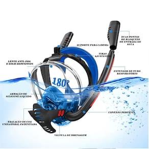 Mergulho engrenagem pode fornecer-lhe uma excelente vista melhor do que máscaras de mergulho padrão, debaixo d'água respirar confortavelmente pela boca ou nariz enquanto snorkeling, O tubo de snorkel angular fica acima da água mais facilmente e dá a sua cabeça mais liberdade de movimento.