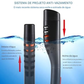 Mergulho engrenagem pode fornecer-lhe uma excelente vista melhor do que máscaras de mergulho padrão, debaixo d'água respirar confortavelmente pela boca ou nariz enquanto snorkeling, O tubo de snorkel angular fica acima da água mais facilmente e dá a sua cabeça mais liberdade de movimento.