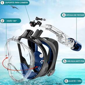 Nossa Máscara Subaquática de Mergulho Full Face Gold Sports Racer Com Snorkel é muito mais longo do que a versão antiga, por isso é mais fácil de desmontar e respiração mais suave.Nosso suporte de câmera de máscara de snorkel é ajustável e móvel, você pode liberar para ajustar a altura. Enquanto o suporte da câmera da versão antiga é corrigido lá. A máscara de mergulho é feita de silicone líquido, é ambientalmente correta e anti-alérgica. Enquanto antes versão é feita de silicone normal. Nossa máscara quando você mergulha a válvula fecha automaticamente sem deixar entrar a água. Respirando naturalmente, a máscara de snorkel facial é muito mais fácil de usar do que a tradicional com o tubo bucal. Maior Área Visualizando. Máscara full face snorkel deixá-lo tirar mais proveito de suas aventuras subaquáticas. Headband ajustável do tecido elástico, fácil de usar e adequado para todos os tipos de forma da cabeça. Mais fácil do que nunca respirar confortavelmente pela boca ou nariz enquanto você está mergulhando Design de fluxo de ar duplo, respirando mais suavemente, qualquer pessoa que não queira respirar suavemente ao mergulhar. Máscara com Snorkel:1 peça Plugue auricular:1 par Mesh Bag:1 peça Manual do usuário:1 peça Marca: Gold Sports Garantia: 01 mês contra defeito de fabricação material: Silicone liquido, poli carbonato, PVC e Poliester
